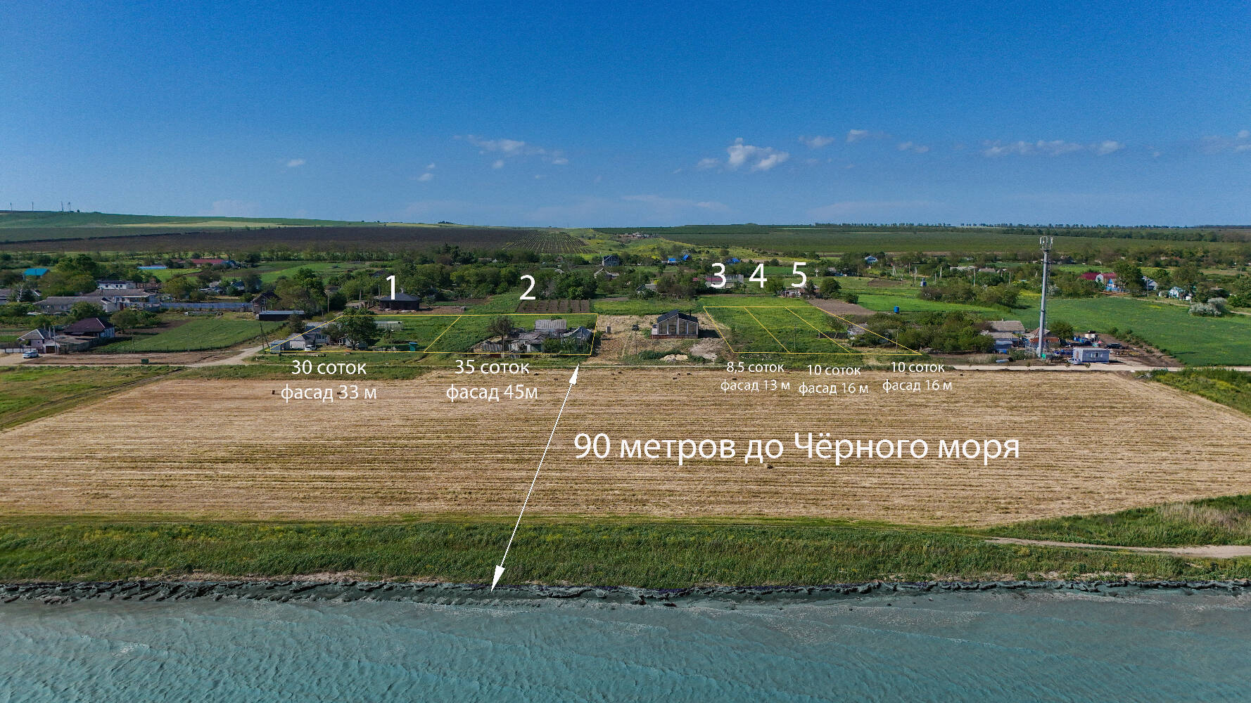 В продаже пять участков на первой линии Чёрного моря. Отличные подъездные пути, удобные выезды в сторону Крымского моста, Краснодара, Аэропорта Анапы. Самое узкое место между Чёрным и Азовским морем, до него всего 6 км. Участок номер 1 - 30 соток с жилым домом, фасад 33 метра. Угловой. Цена 9 400 000 руб Участок 2 - 35 соток со старым домом под снос, фасад 45 метров. Цена 13 000 000 руб Участок 3 - 8,5 соток, фасад 13 метров. Цена 3 600 000 руб Участок 4 - 10 соток, фасад 16 метров. Цена 4 200 000 руб Участок 5 - 10 соток, фасад 16 метров. Цена 5 000 000 руб Участки расположены на единственном холме, что обеспечивает хорошие видовые характеристики. Собственники разные, но все готовы обсуждать предложение. Рядом капитальный бетонный пирс, пологий берег моря.